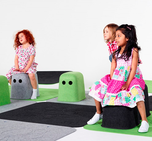 Pall i formpressad filt. Stapelbar. Vändbar-förvaring. Pallen går att få enfärgad eller med olika färger på ut- och insida. Utsidorna är alltid mörkgrå eller ljusgrå.
